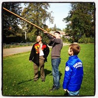 После медовухи всем абсолютно было неважно — на каком языке они звучат: на украинском, русском или еврейском! И слова вдруг все вспомнили (даже кто не знал) и кричали: «БУДЬМО! ГЭЙ!». В общем, наш народ не пропадет нигде! Музыканты даже дали каждому гостю возможность попробовать подуть в трембиту и выдуть какой-нибудь приличный звук. )))