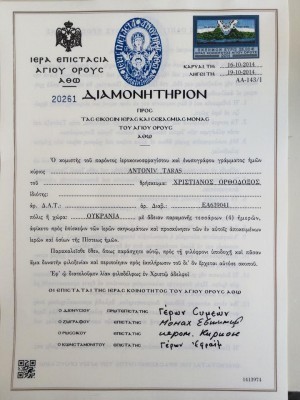 Сильная половина Сети успела посетить Афон, предварительно получив разрешение. Вот так выглядит «пропуск» на Афон: